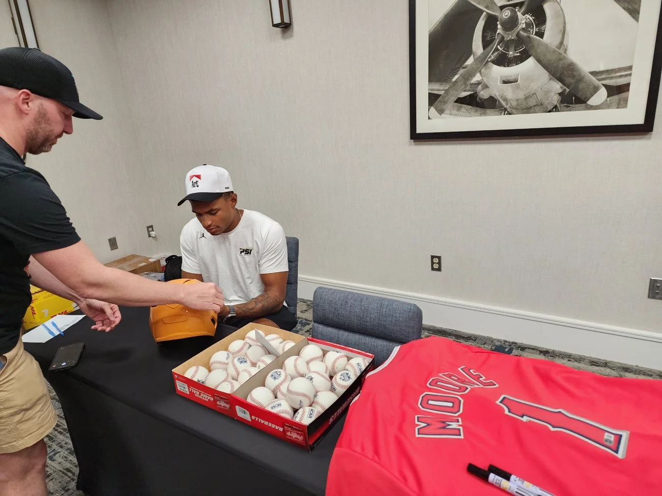 SportsGraphing is excited to announce we are participating in our 2nd private signing with the Tennessee Volunteers Star Second Baseman and 2024 College World Series Champion Christian Moore. C-Mo was the 8th overall draft pick in the 2024 MLB Draft last month, selected by the Angels. He is crushing it already in the minors as well and talks of a September call up to Anaheim in September so get these before escalators kick in and prices double. We will also have baseballs and custom jerseys available for purchase at https://shop.sportsgraphing.com/?s=moore&post_type=product.