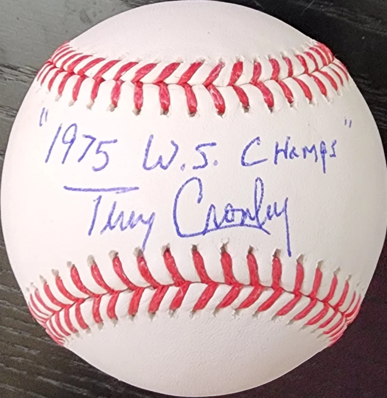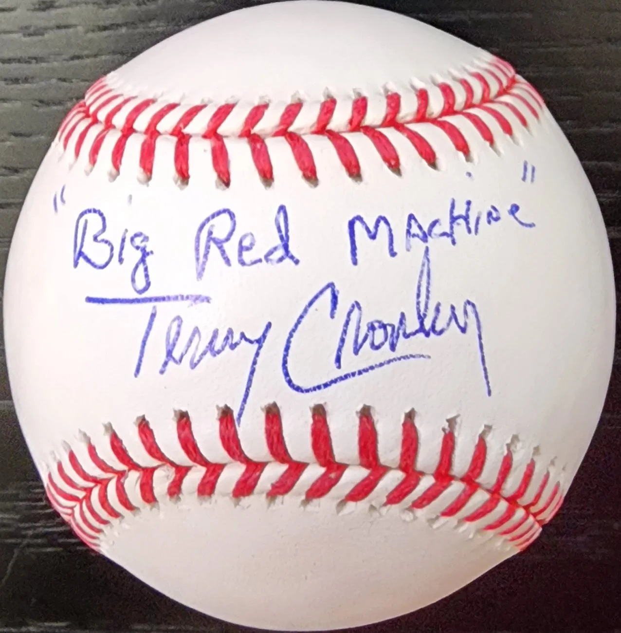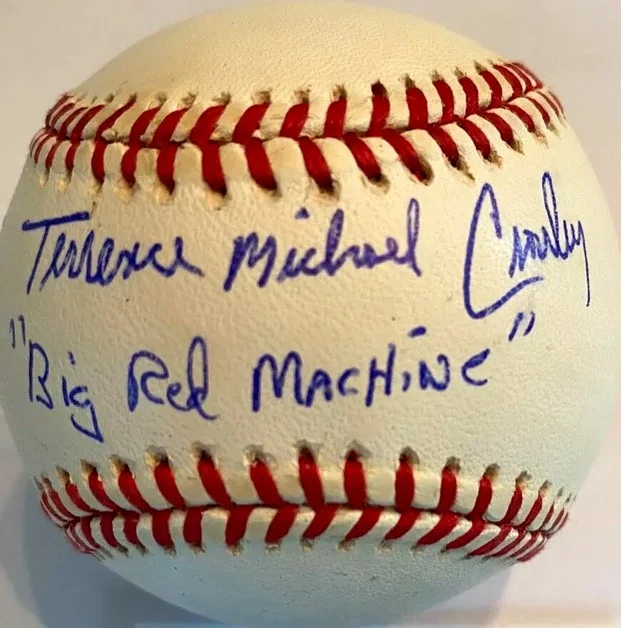 Inscriptions: ‘24 O’s HOF, ‘70 WS Champs, ‘75 WS Champs, ’91 WS Champs, Big Red Machine, The Crow, Full Name