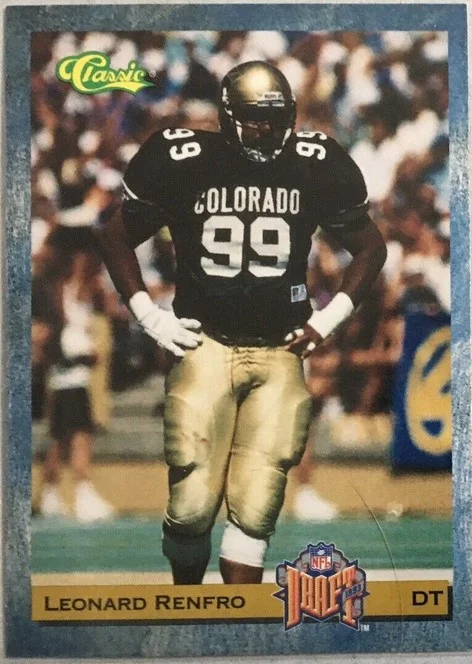 SportsGraphing is pleased to announce our private signing with former Colorado Buffaloes defensive tackle Leonard Renfro. After helping Colorado win the 1990 National Championship and the Orange Bowl on New Year’s Day 1991, Renfro went onto being drafted in the 1st round, 24th overall, by the Philadelphia Eagles. Items must arrive by 2/15/22.