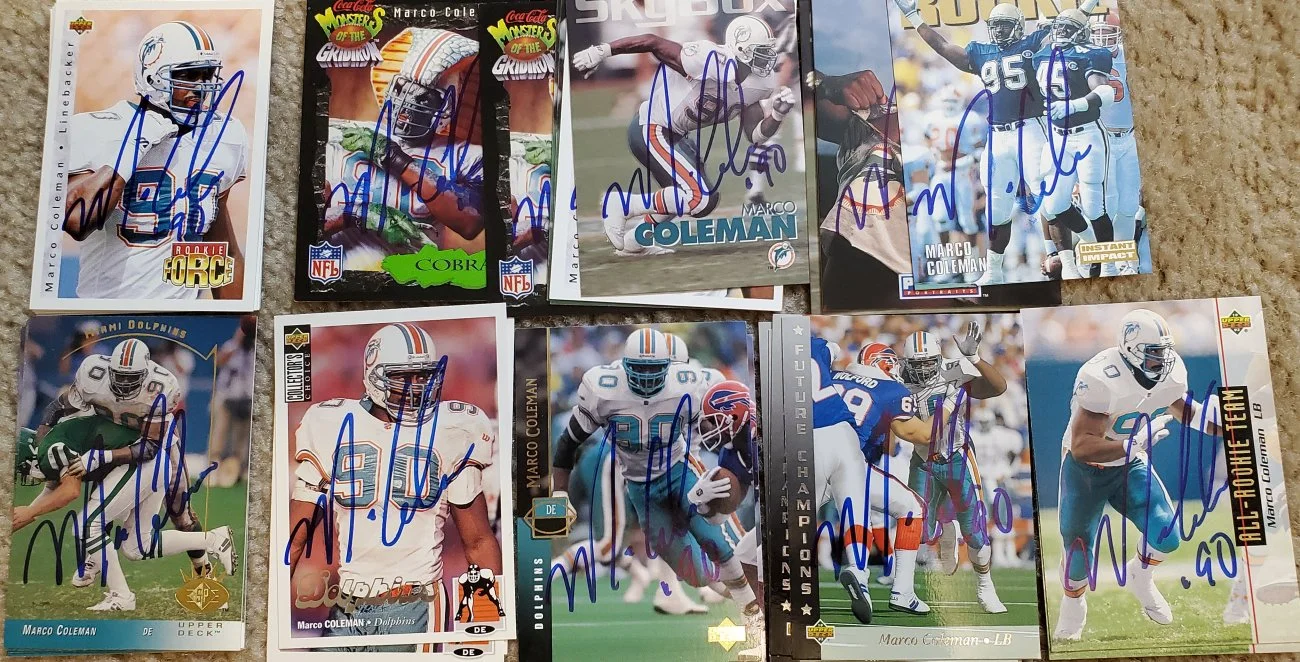 Sportsgraphing is excited to announce our 1st private signing with Marco Coleman in mid-April. Items must be received no later than 4/15/21. As many know, he is IMPOSSIBLE by mail so this is your chance to finally have your items signed.