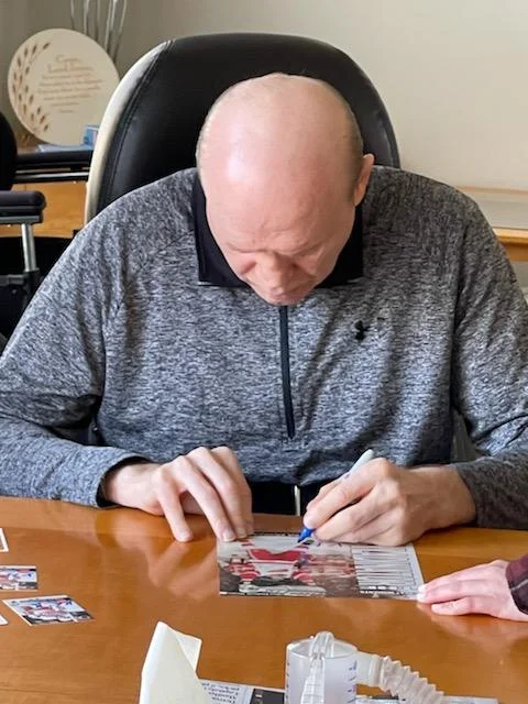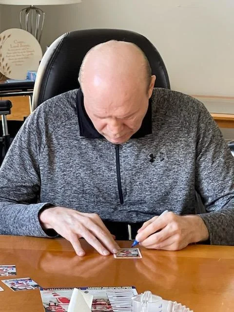 The family has agreed to this signing if 100% of the autograph donation goes to the Vladimir Konstantinov Special Needs Trust that will be used for the ongoing care of Vladdie. Many of you know, he was involved in a horrific limousine crash just six days after the Red Wings 1997 Stanley Cup victory. As you can imagine that accident has changed his and his family's life forever. Over the years, and with a lot of therapy, he has improved but there are still challenges. With this in mind, you understand by participating in this signing that his autograph may be inconsistent. I have attached a picture of his current autograph so you know what we are trying to get close to on your send-in item(s) or our inventory.